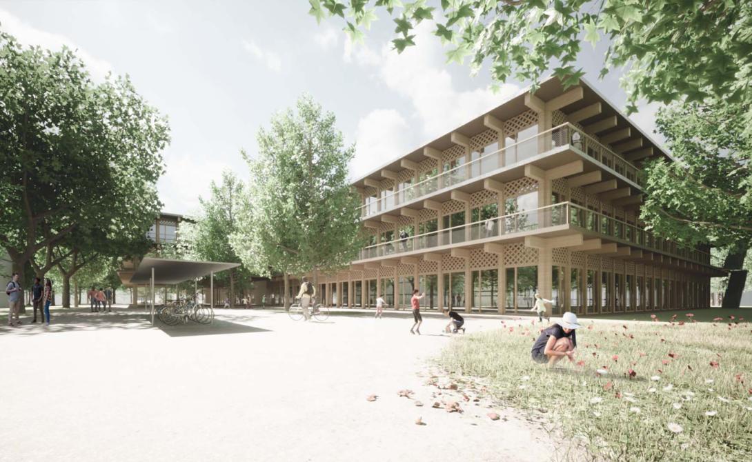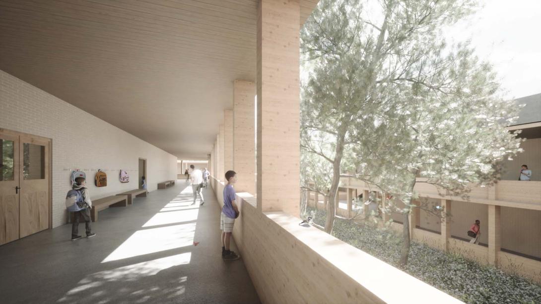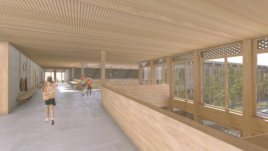 Le bâtiment accueillera une école primaire de 24 classes, des salles omnisports et des locaux complémentaires pour les équipes communales d'entretien. D’une hauteur de trois niveaux, le projet se veut innovant en matière de construction en bois.
