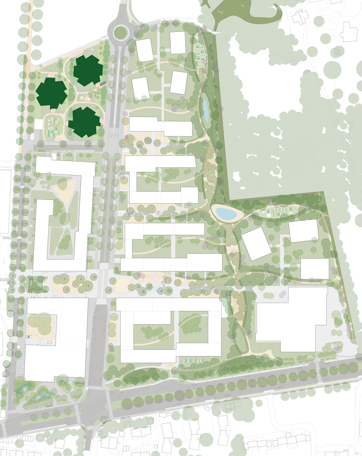 Trois îlots en forme de corolle composent le secteur Ferme. Situé sur le chemin de Beaux-Champs en direction du plateau de Vessy, la Ferme invite ses habitants à se rapprocher de la nature environnante tout en profitant des infrastructures et espaces publics du nouveau quartier.
