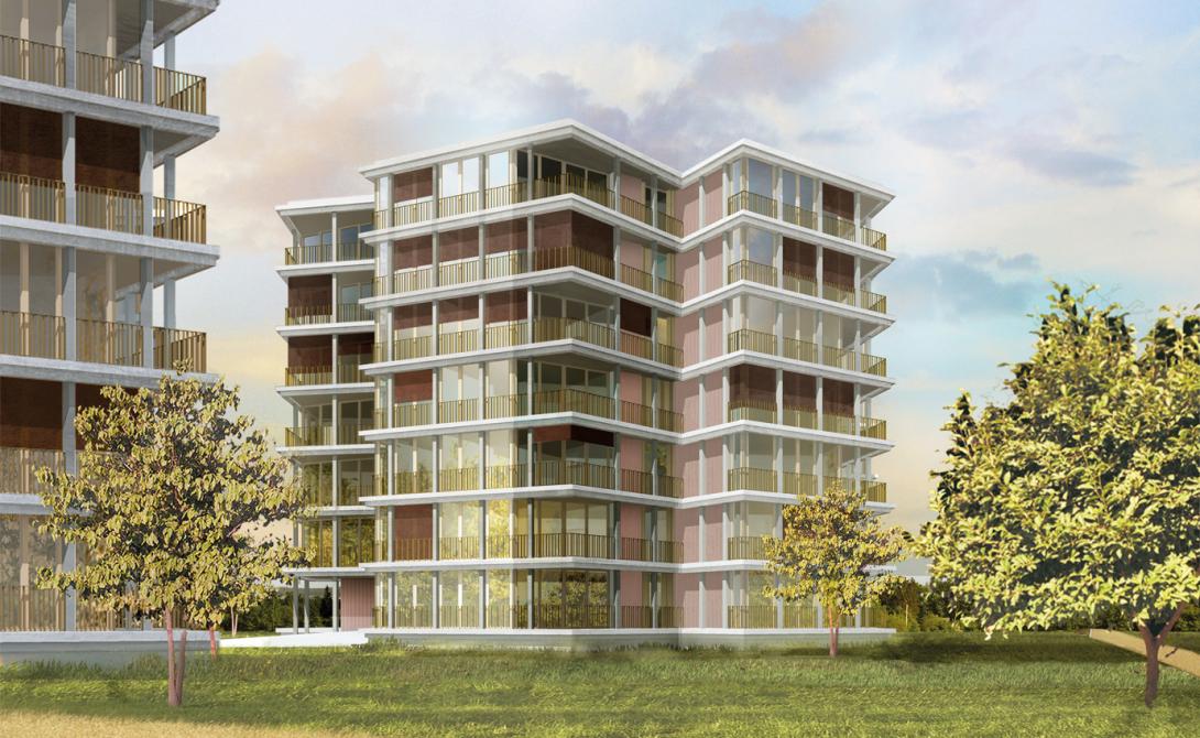 Les trois immeubles totalisent 120 logements du 3 au 5 pièces, répartis sur 7 niveaux (R+6). Ils proposent des logements d’utilité publique (HM-LUP), des habitations mixtes (HM), ainsi que des propriétés par étage en zone de développement (ZD PPE).